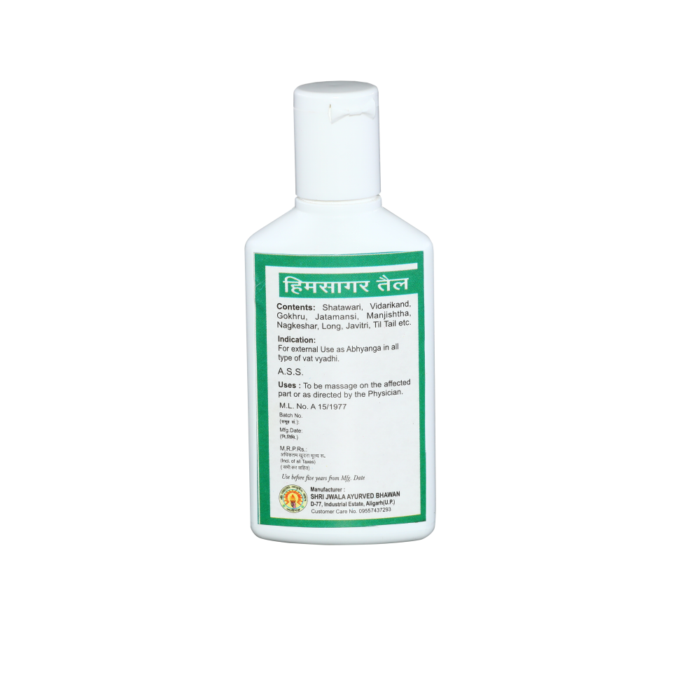 Used externally as abhyanga in all types of Vat Vyadhi. .
