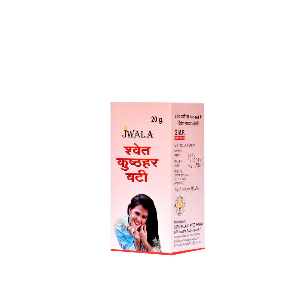 1 Capsule Subah Sham Taje Pani Se Sath Vati Ko Patthar par GHis kar Safed Daag Par Lagane Ke Bad Sukhne Par Hata Dai. Swet Kushthar ghrit ko lagaye. .