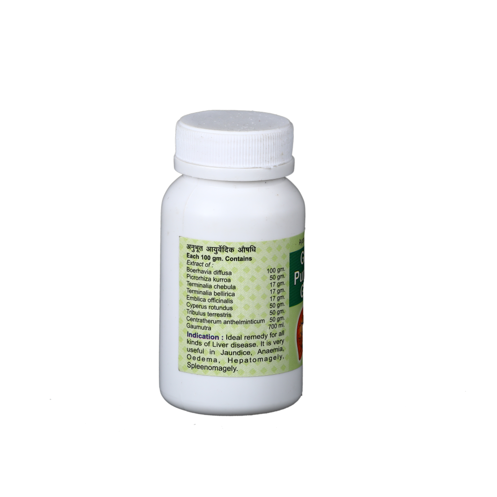 BOERHAVIA DIFFUSA 100 GM. PICRORHIZA KURROA 50 GM. TERMINALIA CHEBULA 17 GM. TERMINALIA BELLIRICA 17 GM. EMBLICA OFFICINALIS 17 MG. CYPERUS ROTUNDUS 50 GM. TRIBULUS TERRESTRIS 50 GM. CENTRATHERUM ANTHELMINTICUM 50 GM. GAUMUTRA 700 ML..