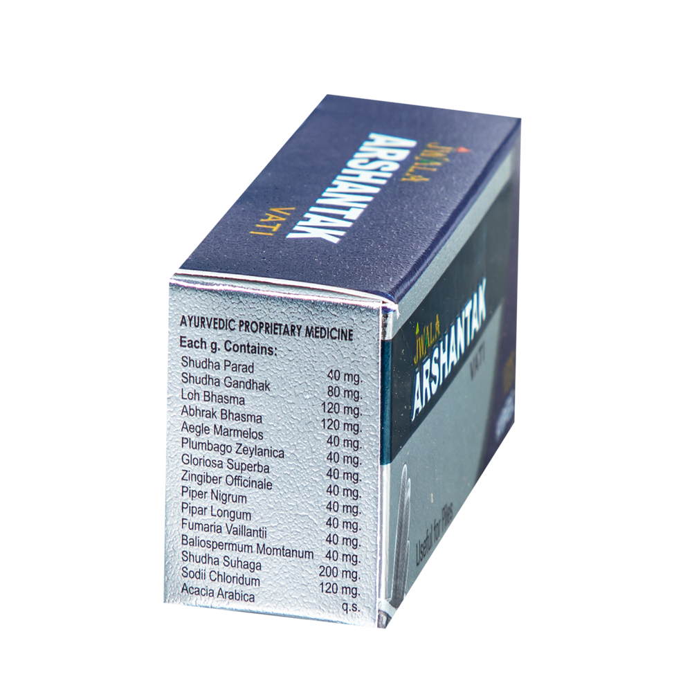 Shudh Parad 40 mg. Shudha Gandhak 80 mg. Loh Bhasma 120 mg. Abhrak Bhasma 120 mg. Aegle Marmelos 40 mg. Plumbago Zeylanica 40 mg. Gloriosa Superba 40 mg. Zingiber Officinale 40 mg. Piper Nigum 40 mg. Piper Longum 40 mg. Fumaria Vaillantil 40 mg. Baliospermum Momtanum 40 mg. Shudha Suhaga 200 mg. Sodii Chloridum 120 mg. Acacia Arabica Q.S..