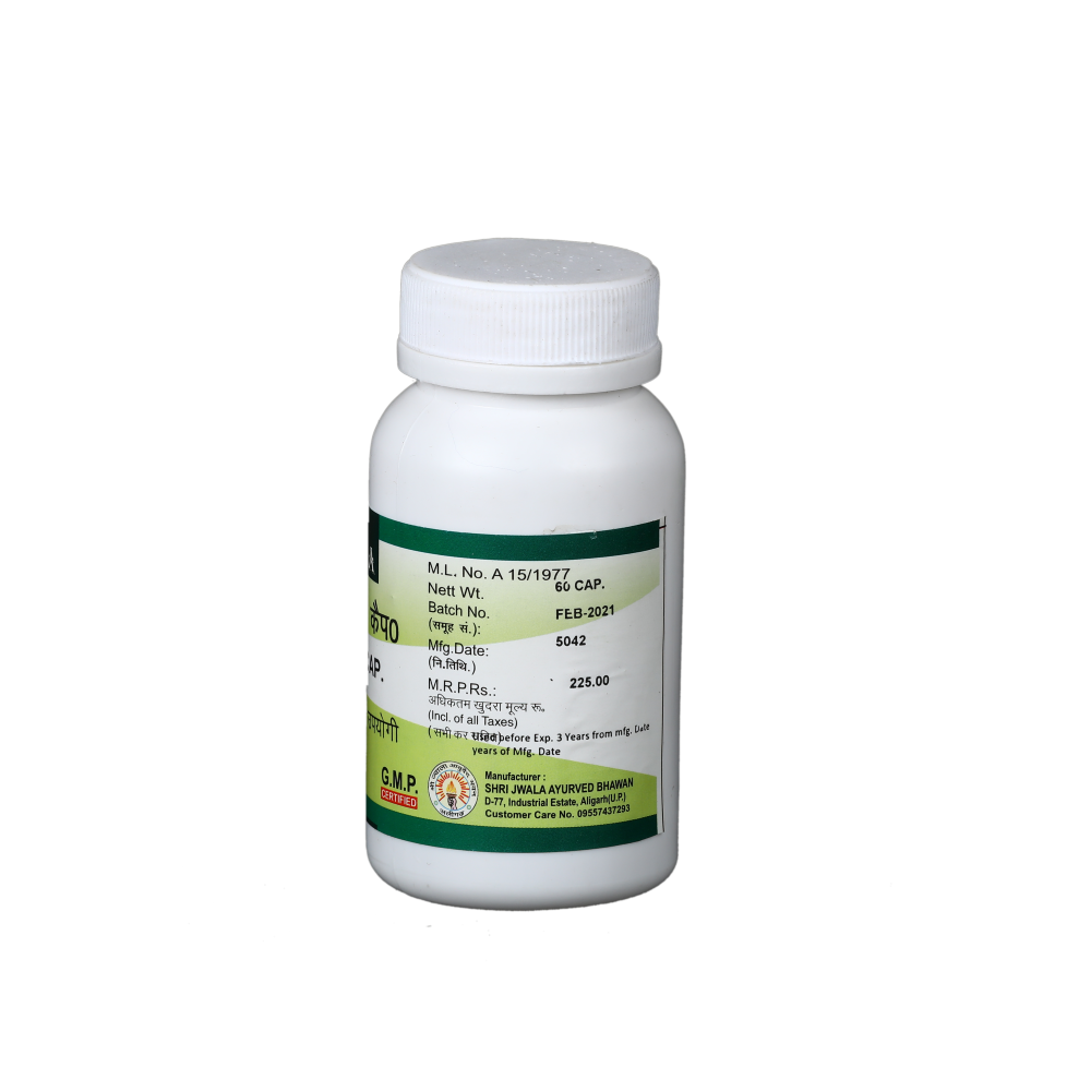 Ras Sindur 60 mg. Nityanand Ras 150 mg. Yograj Gugal 700 mg. Solid extract of Haritaki 150 mg. .