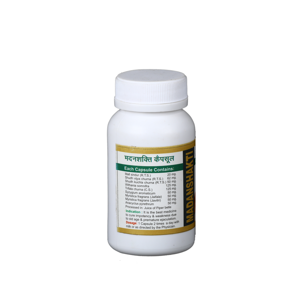 Jwala Madanshakti Capsule is a unique Ayurvedic formulation prepared with multi powerful Ayurvedic herbs & minerals which are known to help to increase Stamina ,Strength ,energy and performance for healthy and happy life . It also helps to reduce stress & lethargyness. .