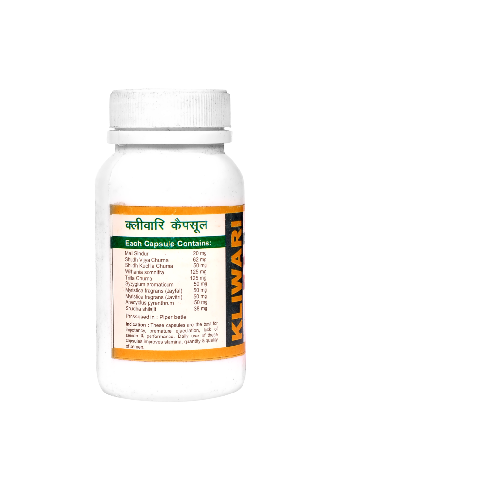 KLIWARI CAPSULE is a unique Ayurvedic formulation prepared with powerful Ayurvedic herbs & minerals which are known to help to increase Stamina ,Strength ,energy and performance for healthy and happy life . It also helps to reduce stress & lethargyness. .